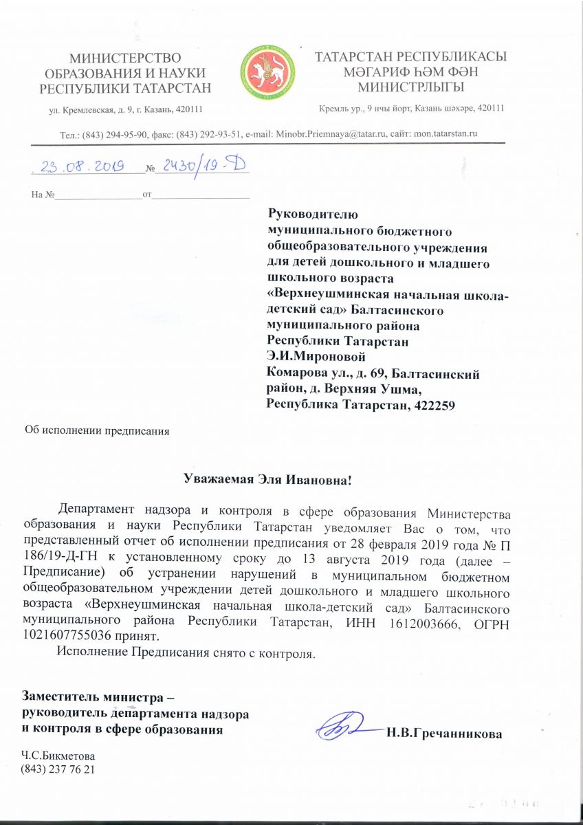 Приказ Мо и Н РТ о переоформлении лицензии на осуществление образовательной деятельности
