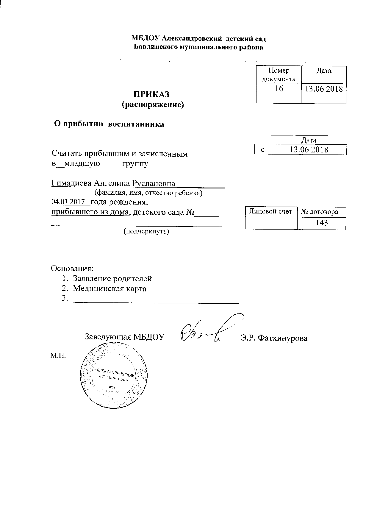 приказ о прибытии в младшую разновозрастную группу 1 воспитанника № 16 от 13.06.2018г.bmp
