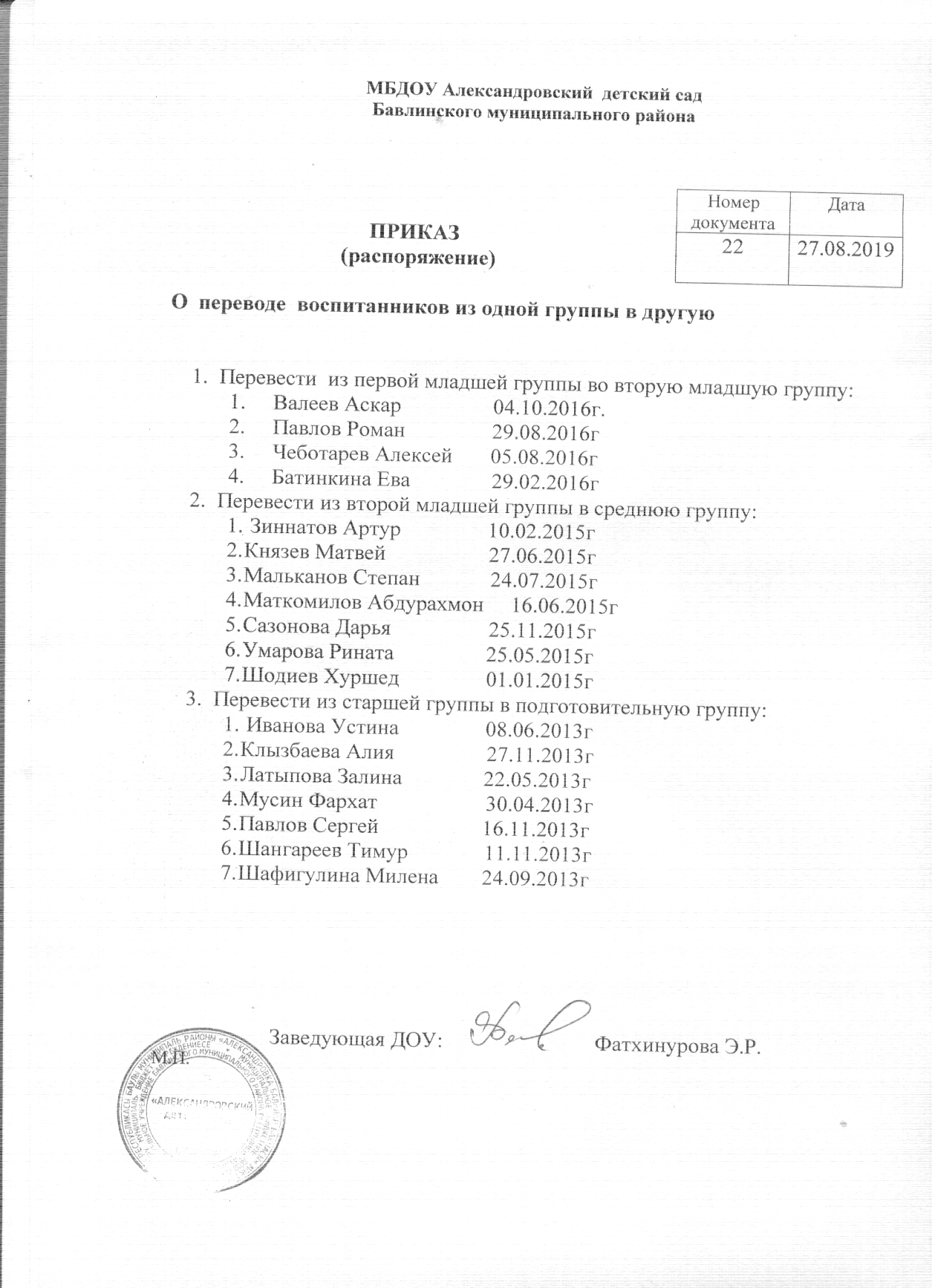 Приказ о переводе из одной группы в другую № 22 от 27.08.2019г 18 воспитанников.bmp