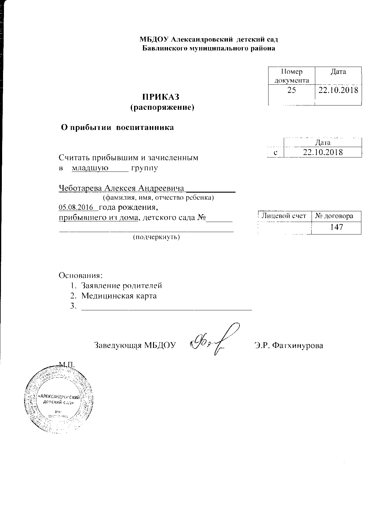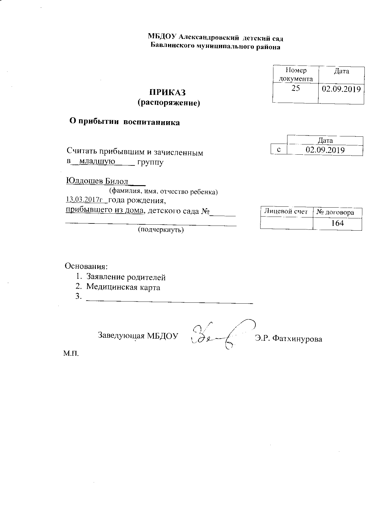 Приказ о прибытии в младшую разновозрастную группу № 25 от 02.09.2019г 1 воспитанника.bmp