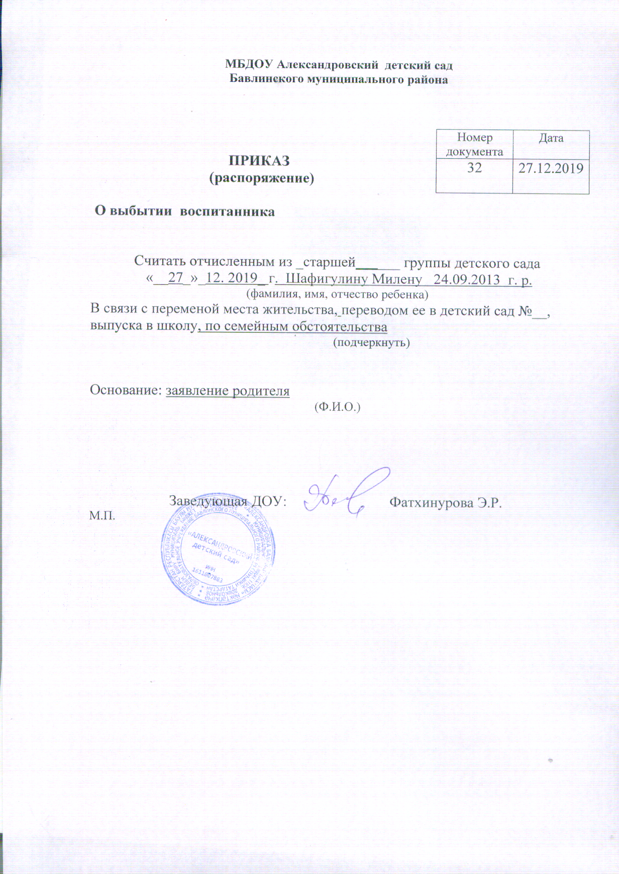 Приказ о выбытии воспитанника из старшей группы № 32 от 27.12.2019 1 воспитанник.bmp