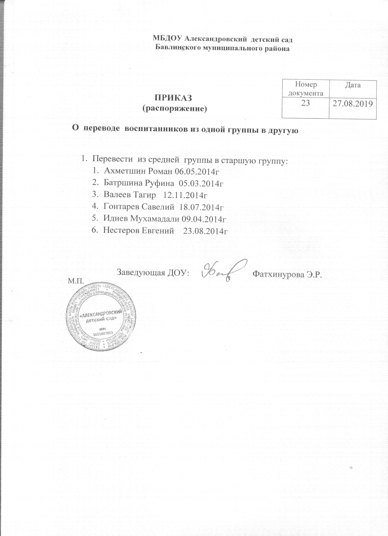 Приказ о переводе из средней в старшую группу № 23 от 27.08.2019г 6 воспитанника.bmp