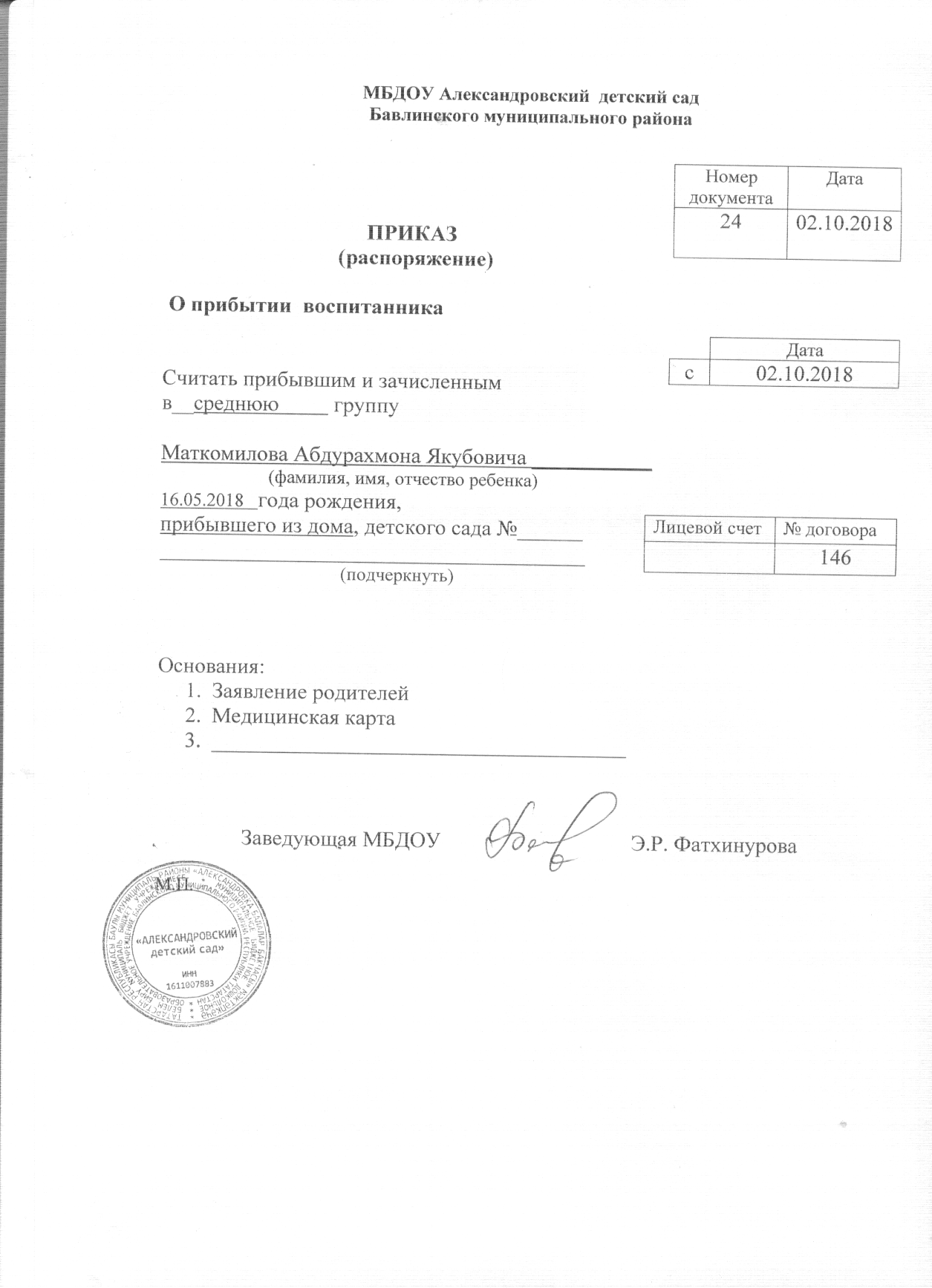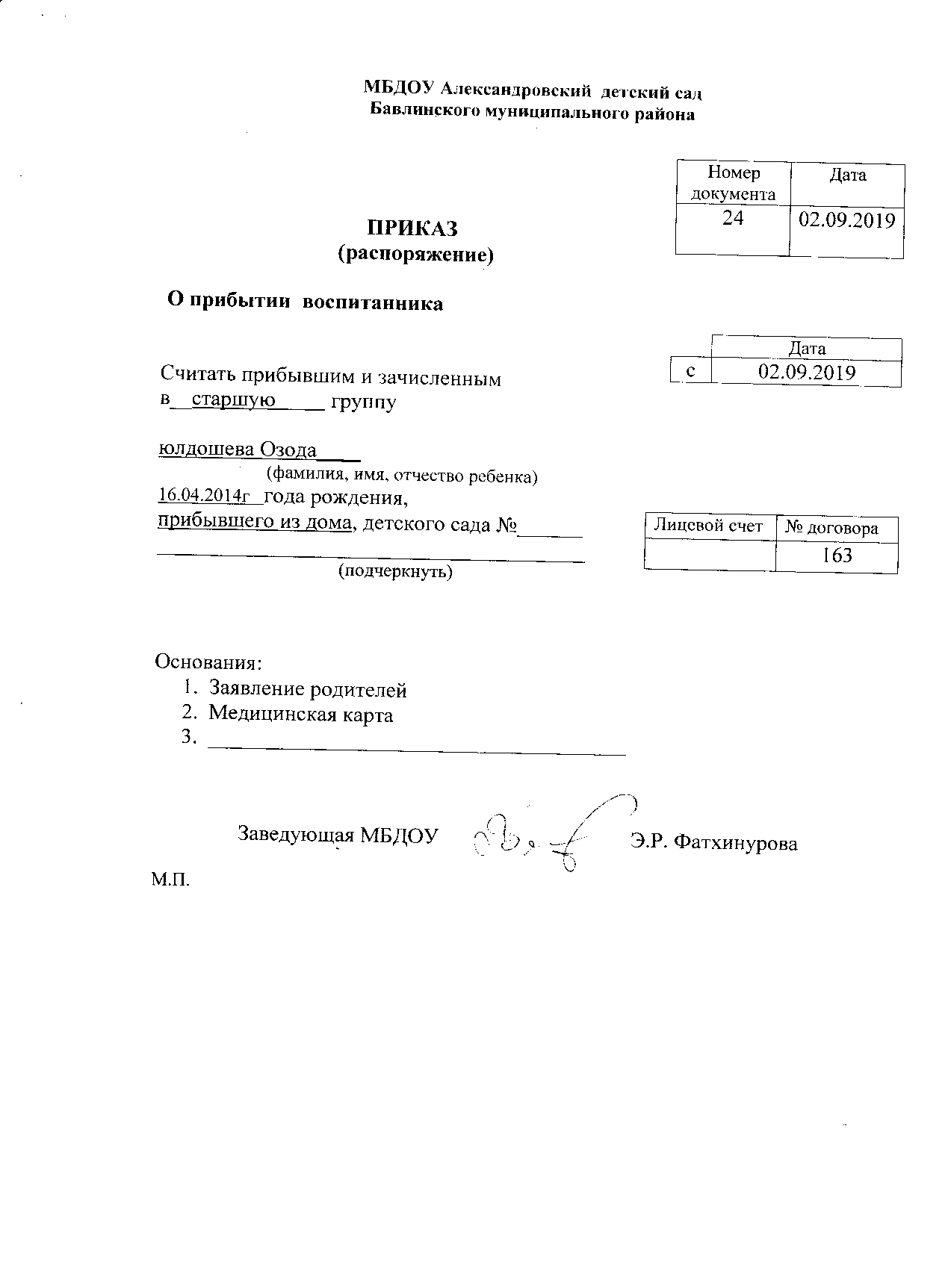 Приказ о прибытии в старшую разновозрастную группу № 24 от 02.09.2019г 1 воспитанника.bmp