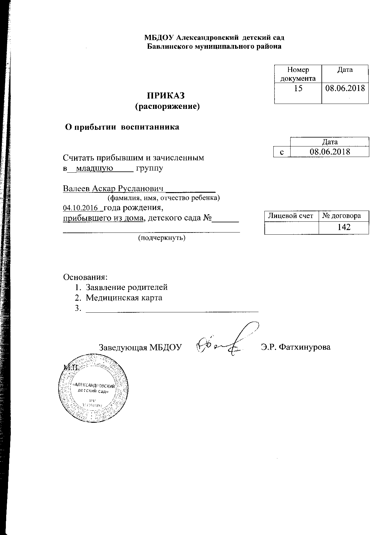 приказ о прибытии в младшую разновозрастную группу 1 воспитанника № 15 от 08.06.2018г.bmp