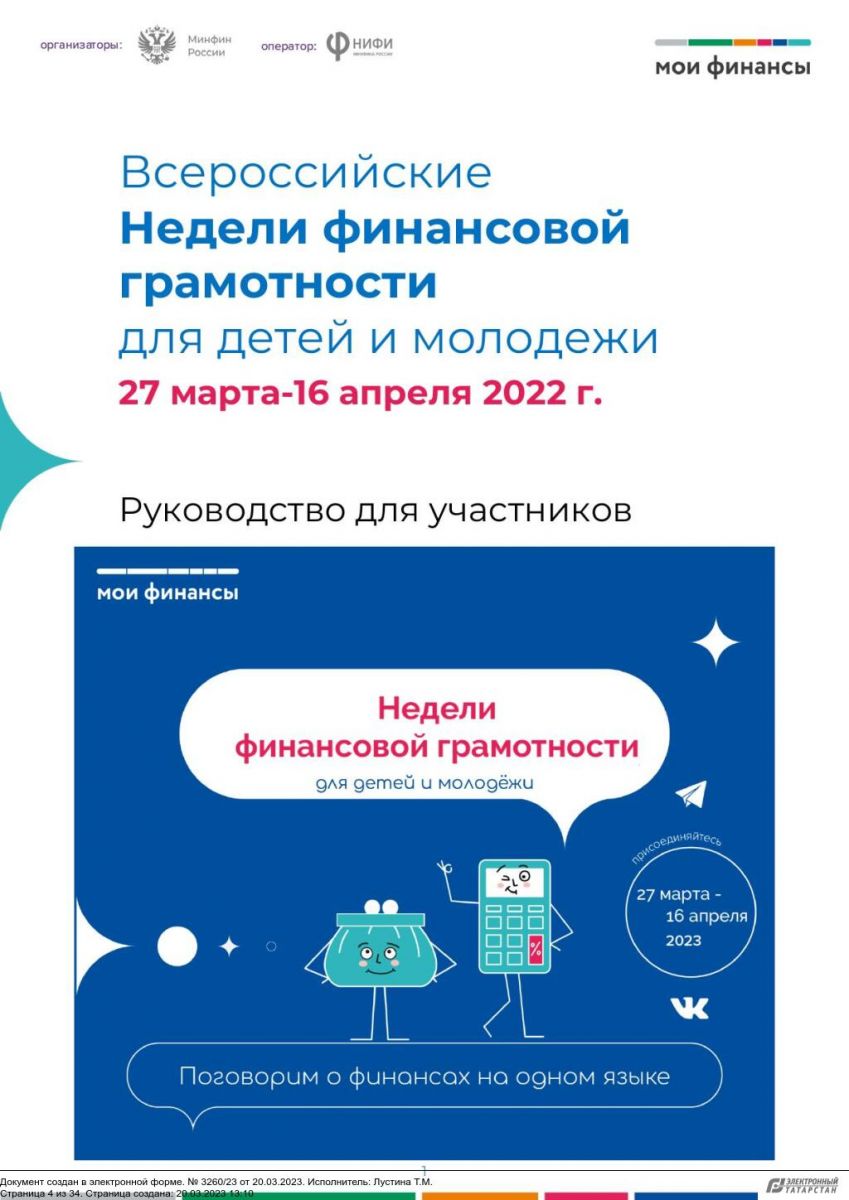 Всероссийские недели финансовой грамотности/Бөтенрәссәй финанс грамоталылыгы атналыгы 27.03.2023