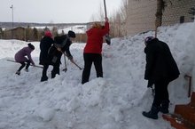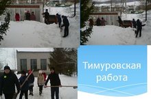 Сегодня тимуровцы школы совершили рейд по очистке территории обелиска от снега.
