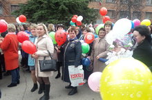 1 мая коллектив дошкольного учреждения, дружно вышел на праздничную демонстрацию, где в праздничной колоне с воодушевлением и высоким эмоциональным настроем прошел по площади нашего города.