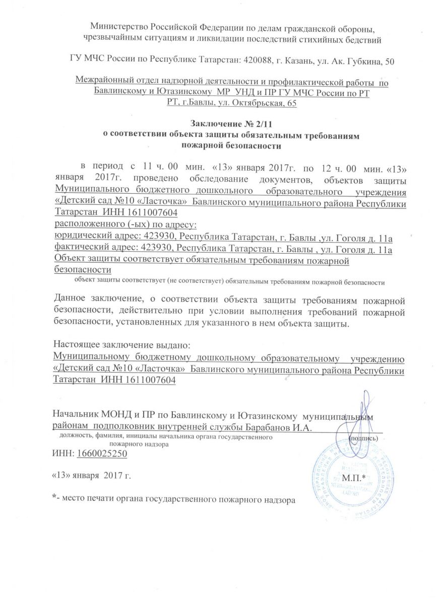 Заключение пожарного надзора