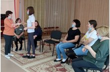 В рамках месячника по охране труда в детском саду прошел круглый стол "Организация проведения занятий по оказанию доврачебной помощи при несчастных случаях". Медсестры провели практикум по оказанию первой помощи.