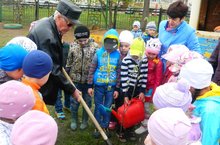 Сегодня в нашем детском саду прошло мероприятие посвященное Дню Победы. К нам в гости пришел труженник тыла Пронин Алексей Михайлович. Для него дети исполнили песни, рассказали стихи и станцевали. Алексей Михайлович рассказал о своем непростом детстве, о том, что его отец погиб на войне. Дети задавали вопросы о войне, о наградах полученных Алексеем Михайловичем и сказали -"Спасибо за мирное небо над головой!". Алексею Михайловичу мероприятие очень понравилось. Вместе с детьми он посадил рябины на территории детского сада. Ещё раз благодорим Пронина Алексея Михайловича за предоставленную возможность пообщаться с ветераном Великой Отечественной войны.