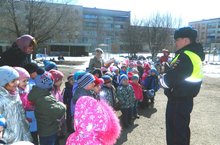 2015 елнын 3 нче апрелендә безнең балалар бакчасында БДД ОГИБДД өлкән полиция лейтенанты Исхаков Д.Ф. балалар белән "Юл кагыйдәләре" турында әңгәмә уздырды. Балалар кунакка сораулар бирделәр. Кунак баларга бүләкләр таратты.