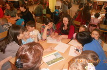Сегодня у нас в гостях были учителя начальных классов и учителя по обучению татарскому языку из средней школы №5 Идиятуллина Айсылу Ринатовна, Можгова Энже Мадхатовна, Мугинова Айсылу Альбертовна, Насибуллина Ильсияр Фаритовна, Галеева Гульназ Ильгизовна. Они посмотрели музыкальный спектакль на татарском языке по сказке Абдуллы Алиша "Сертотмас үрдәк". Учителя дали очень высокую оценку не только творческим способностям детей, но и знанию татарского языка. Воспитатель по обучению татарскому языку Газизуллина Гузалия Миргазияновна показала фрагмент занятия с использованием УМК, в котором русскоязычные дети подготовительной к школе группы "Мальвина" показали знания татарского языка. Учителям очень понравились музеи русской и татарской национальной культуры. Дети из средней группы "Солнышко" и их воспитатели Даренская Елена Анатольевна и Ситдикова Галия Саубяновна показали свои знания татарского языка.