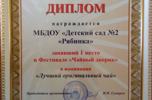 Шәһәр көне бәйрәмен билгеләп үткәндә безнең балалалар бакчасы коллективы “Чәй өстәле” фестиваленда катнашып 1 урынга лаек булды.