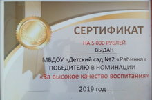 На ежегодной августовской конференции работников образования были поставлены задачи на новый учебный год подведены итоги прошлого года. По итогам рейтинга прошлого учебного года коллектив нашего МБДОУ был награжден сертификатом победителя в номинации “За высокое качество воспитания”. Так держать!