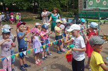 Летние праздники всегда проходят особенно весело. Ведь можно вдоволь потанцевать, попрыгать, побегать, поиграть с мячом, с песком и даже с водой. Вот и на нашем празднике были такие игры как «Веселый дождик», «Шел козел по лесу», «Игра с мыльными пузырями», спортивные эстафеты, веселый флешмоб, ну и конечно, много песен было спето про веселое лето.