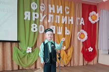 В этом году наш земляк поэт, прозаик и драматург Фанис Яруллин отметил бы свой 80 летний юбилей. К сожалению, он не дожил до знаменательной даты, но его стихи, рассказы, пьесы остались как память о нем, о его творчестве, жизни. В честь юбилейной даты в гимназии № 4 состоялся конкурс чтецов его стихотворений. В нем активно приняли участие практически все детские сады района, а также ученики школ. Воспитанник подготовительной группы нашего детского сада прочел стихотворение Фаниса Яруллина на татарском языке “Бэби кемгә ошаган?” и удостоился второго места, с чем мы его и поздравляем.Икенче урынга лаек булды.Быел якташыбыз, шагыйрь, язучы, драматург Фәнис Яруллин тууына 80 ел тулыр иде. Әлеге истәлекле көнне билгеләп, язучының иҗатын искә төшереп гимназиядә шигырь бәйгесе уздырдылар. Фәнис Яруллинның “Бәби кемгә ошаган?” шигырен сөйләп безнең балалар бакчасының мәктәпкә әзерлек төркеменә йөрүче Райхан Валиуллин икенче урынга лаек булды. -