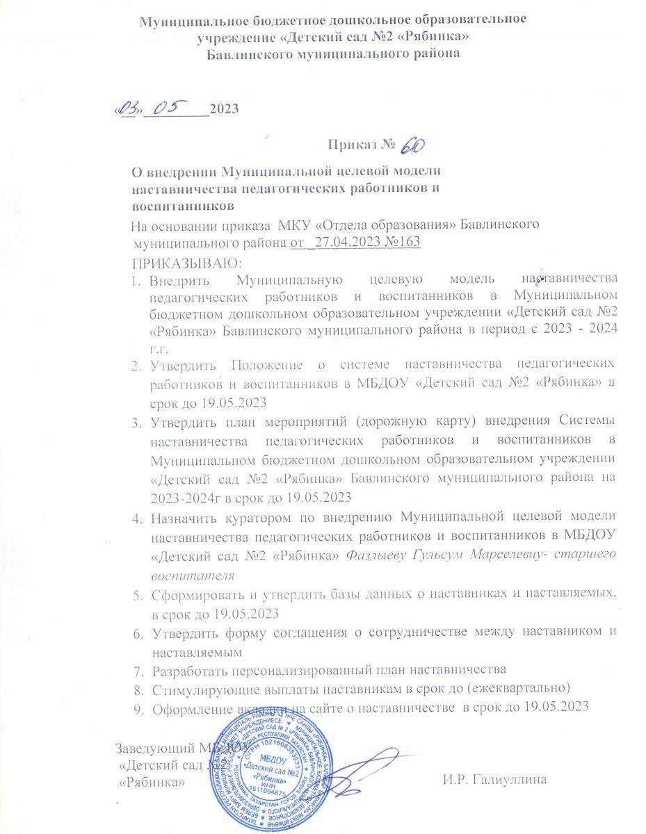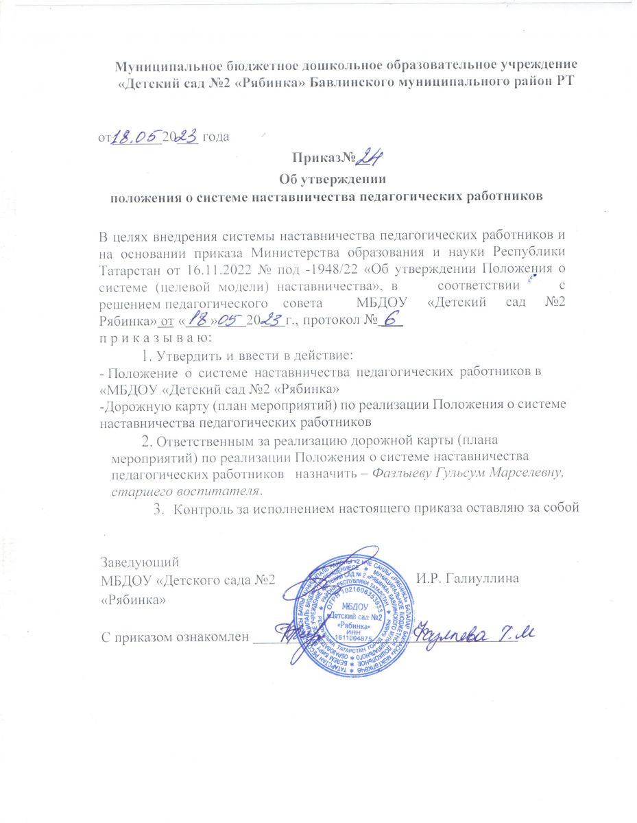 Приказ об утверждении положения о системе наставничества педагогических работников
