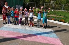 Воспитанники подготовительной к школе группы приняли участие в праздновании Дня государственного флага Российской Федерации нарисовали мелом бело-сине-красный триколор. Воспитатели рассказали детям об истории праздника, важности и значение государственных символов России.