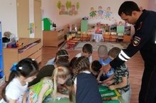 Сегодня лейтенант полиции инспектор по ИАЗ отделения ГИБДД отдела МВД России по Бавлинскому району Галимов Альберт Афгатович провел профилактическую беседу о безопасности дорожного движения с детьми старшей группы, а также раздал газеты и подарил детям развивающую игру «Дорожные знаки».