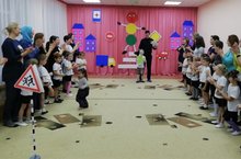 в МБДОУ «Детский сад № 4 «Ромашка» прошло познавательно - развлекательное мероприятие по правилам дорожного движения с детьми средней, старшей и подготовительной групп (в мероприятии приняли участие 47 воспитанников) «Баба Яга изучает правила дорожного движения». Цель: уточнить и расширить знания детей о правилах поведения на улице и дорогах, об обязанностях пешеходов и водителей. Подготовили и провели мероприятие воспитатели Кандаурова В.С., Герасимова А.Р., Шарафеева И.З., Латыпова О.В. В ходе мероприятия ребята рассказывали стихотворения о безопасности на дорогах, участвовали в играх и разбирали дорожные ситуации, соревновались в ловкости, меткости, скорости. Был проведён конкурс рисунков на асфальте «О чём говорят дорожные знаки!», познакомились со специальным транспортом. В конце мероприятия Игнатьева Разида Ильсуровна начальник отделения профилактики ГБУ «Безопасность дорожного движения» и старший инспектор ГИБДД лейтенант полиции Мансуров Ильдар Гайсарович поблагодарили всех участников мероприятия, подарили каждому ребёнку книгу «Безопасная дорога» и пожелали творческих успехов.