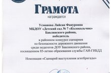Подведены итоги районного конкурса сценариев по безопасности дорожного движения среди педагогов ДОУ Бавлинского района, посвященном 85-летию образования службы ГАИ-ГИБДД. Поздравляем! 01.07.2021