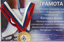 Грамота за успешное окончание сезона по фигурному катанию 26.05.2022
