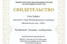 Наш музыкальный руководитель Хусаенова Э.А. участвовала в зональном этапе Республиканского конкурса "Воспитатель года - 2021