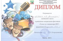 Сегодня в ДК имени М.Джалиля прошёл театральный фестиваль-конкурс "Туган тел чишмәләре - 2017" среди дошкольных образовательных учреждений. Наш детский сад наградили Дипломом 1 степени. Ура !!!!! Мы Победители !!!