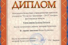Наш детский сад награжден Почетным Дипломом за 2 место в районном театральном фестивале "Туган тел чишмәләре - 2015".