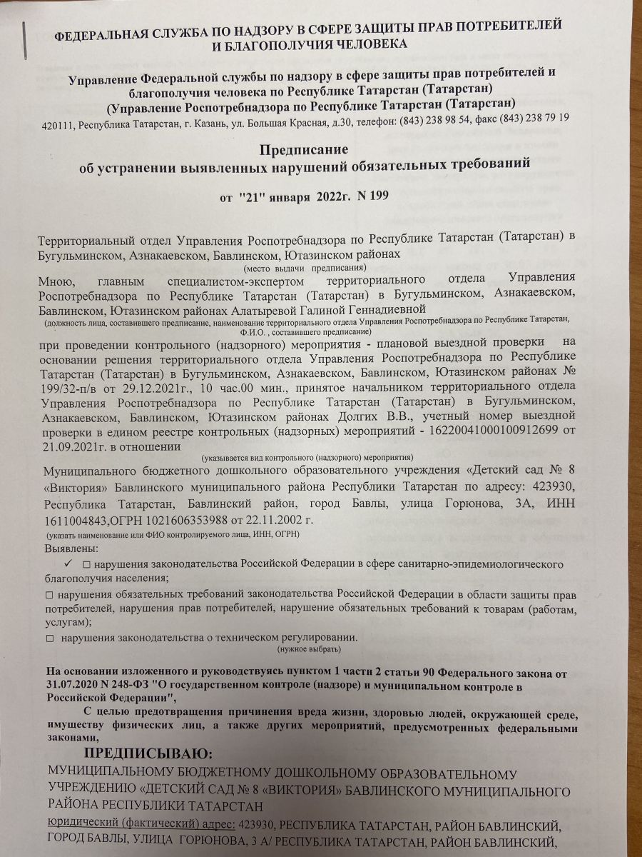 Муниципальное бюджетное дошкольное образовательное учреждение «Детский сад №8 "Виктория" Бавлинского муниципального района Республики Татарстан / Татарстан Республикасы Баулы муниципаль районы "8-нче санлы "Виктория" балалар бакчасы" мәктәпкәчә белем бирү муниципаль бюджет учреждениясе