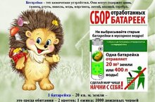 Планетаны сакла батарейканы бир! Дуслар, безнең балалар бакчасында кулланылган батарейкаларны тапшыру акциясе игълан ителә. Бер ташланган батарея 20 квадрат метр җирне пычрата. Бу ике сукыр тычкан, бер керпе һәм меңләгән яңгыр суалчаннары яшәгән территория. Батарейканың тулысынча таркалу вакыты якынча 110 ел, шул ук вакытта ул әйләнә-тирә мохитне терекөмөш, кадмий һәм никель белән пычрата. Бер тапшырылган батарейка Планетаны коткарачак! Акциягә кушылыгыз, эшкәртелгән батарейкалар китерегез. Бергә дөньяны чистартырбыз!