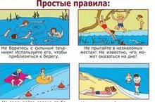- При купании в естественном водоеме не заплывать за установленные знаки ограждения, не подплывать близко к моторным лодкам и прочим плавательным средствам.