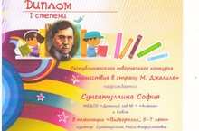 Безнең балалар бакчасында тәрбияләнүчеләр "М. Җәлил иленә сәяхәт" Республика иҗади конкурсында катнаштылар һәм Дипломнар белән бүләкләнделәр.