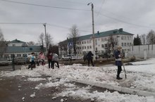 Сотрудники детского сада ежедневно выходят на субботник по очистке территории от снега.