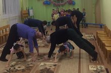 Дети подготовительной к школе группы поздравили с праздником защитников Отечества своих пап и дедушек. Праздник прошел в виде рыцарского турнира. Дети переместились в эпоху рыцарей и провели спортивные соревнования.