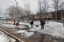 Шәһәребезне чистарту буенча 1 апрельдән 31 нче майга кадәр икеайлык билгеләнде. Шул исәптән, бүген бакчабыз хезмәткәрләре бакча ишек алдындагы карны таратуга чыкты.