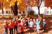 Осень... Все деревья нарядились в красочные одеяния. Дети подготовительной и старшей групп вышли с экскурсией в Парк Победы. Ребята любовались природой, собирали букеты из осенних листьев.