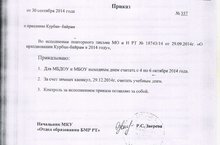 Согласно приказа МКУ "ОО БМР РТ" от 30 сентября 2014 года № 357 выходным днем для МБДОУ считать с 4 по 6 октября 2014 года.