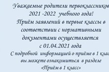 Внимание! Прием в 1 класс на 2021-2022 учебный год. 31.03.2021