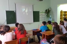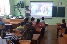 "Сугышның хатын-кыз йөзе түгел" акциясе кысаларында 5 нче сыйныфта "Сестренка" фильмын карау.