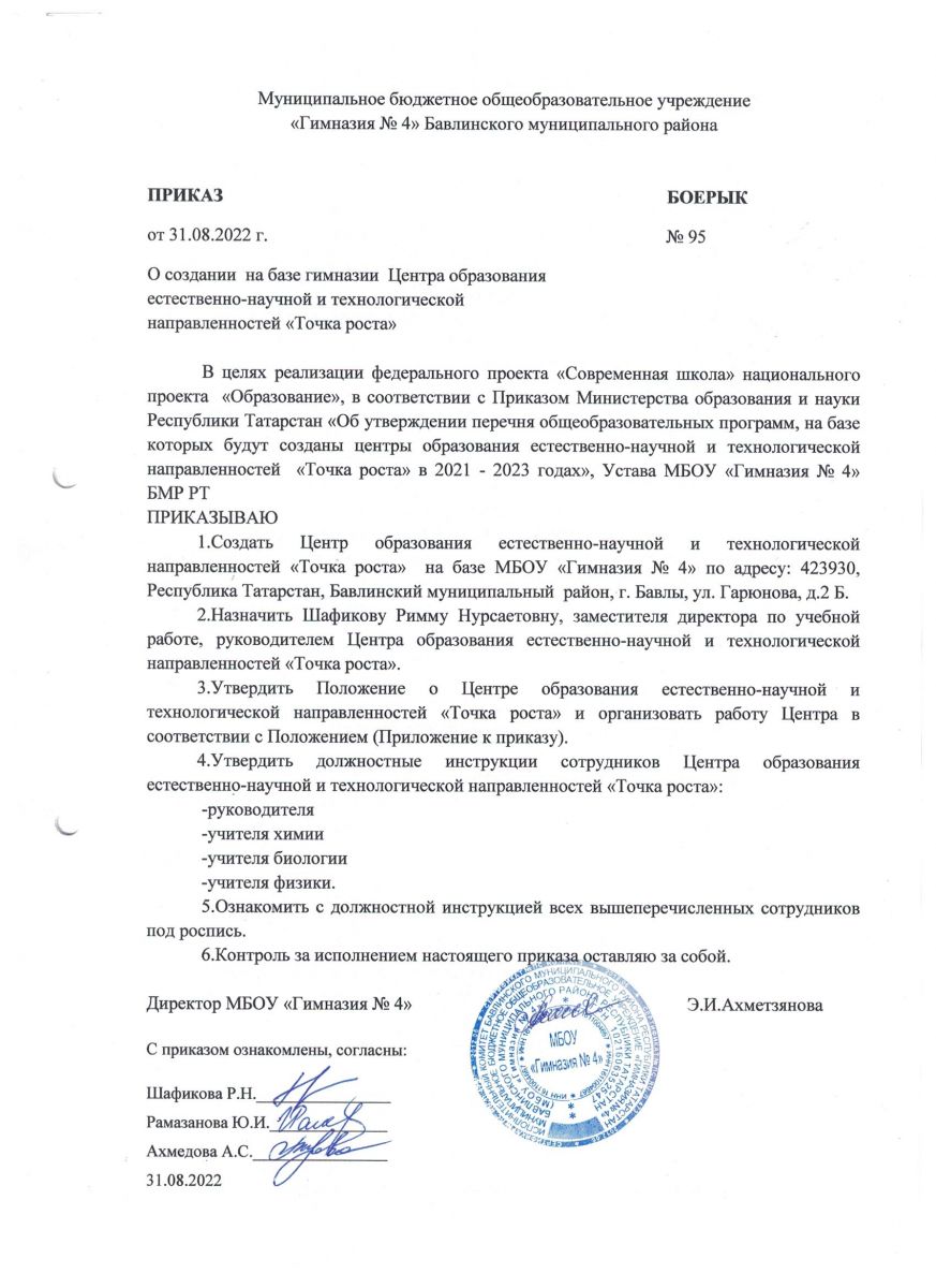ДОЛЖНОСТНАЯ ИНСТРУКЦИЯ УЧИТЕЛЯ ЦЕНТРА ОБРАЗОВАНИЯ ЕСТЕСТВЕННО-НАУЧНОЙ НАПРАВЛЕННОСТИ «ТОЧКА РОСТА»