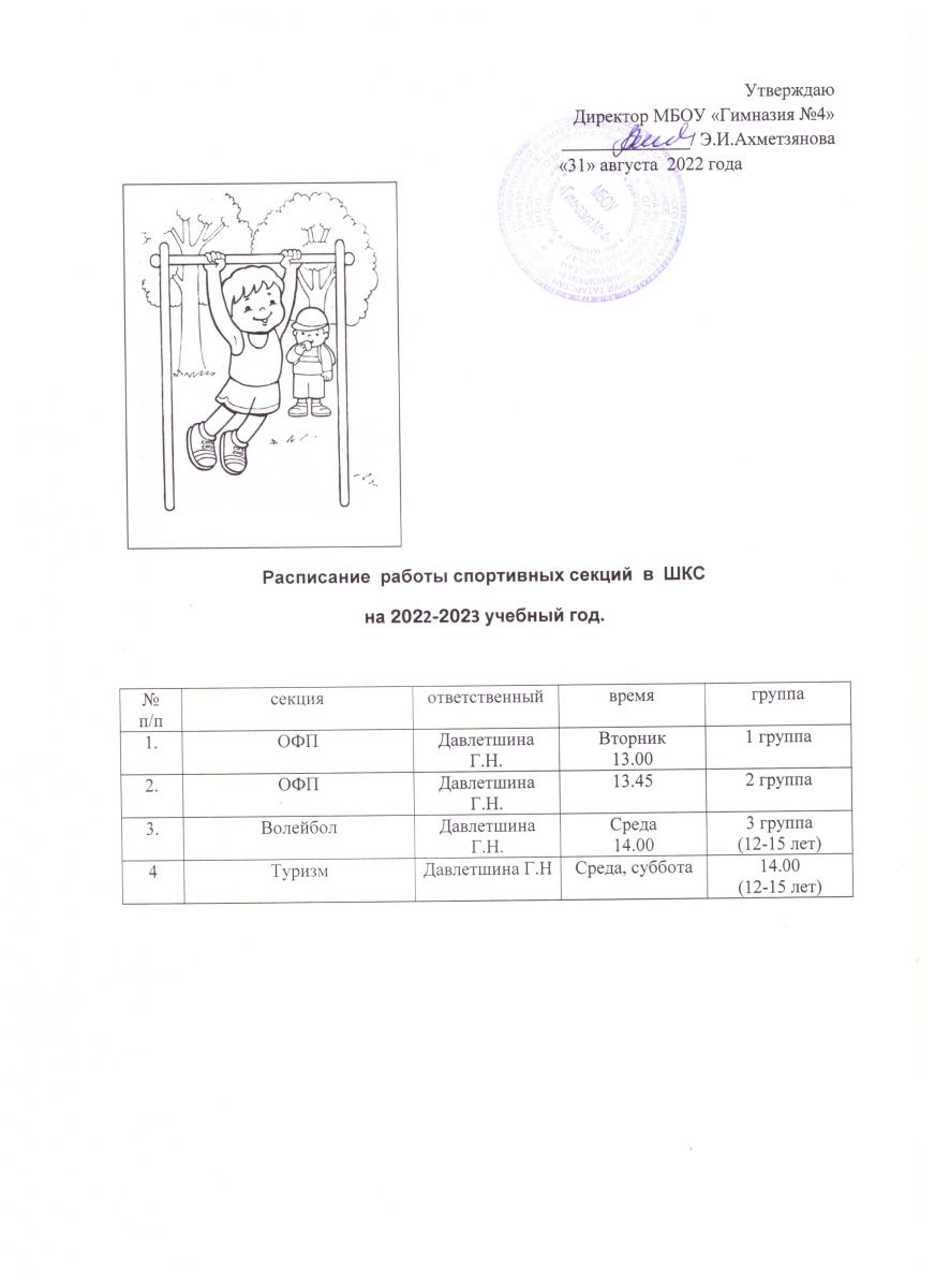 Расписание работы спортивных секций в ШСК на 2022-2023 учебный год