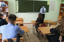 Встреча учащихся с сотрудниками отдела МВД России по Бавлинскому району в рамках проведения профориентационной работы. Һөнәри юнәлеш бирү эшен үткәрү кысаларында укучыларның Россия Эчке эшләр министрлыгының Баулы районы буенча бүлеге хезмәткәрләре белән очрашуы. 12.11.2020