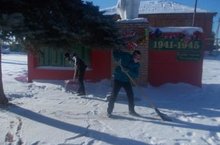 В рамках акции "Мы помним" учащиеся 7 класса убирали снег с территории обелиска Неизвестному солдату.