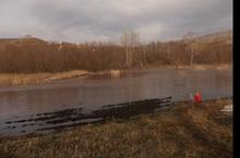 Будьте осторожны, вода вышла из берегов, не подходите близко к речке.