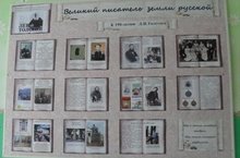К 190- летию Л.Н.Толстого учитель русского языка и литературы Кулагина А.В. с учащимися оформили стенд "Великий писатель земли русской"