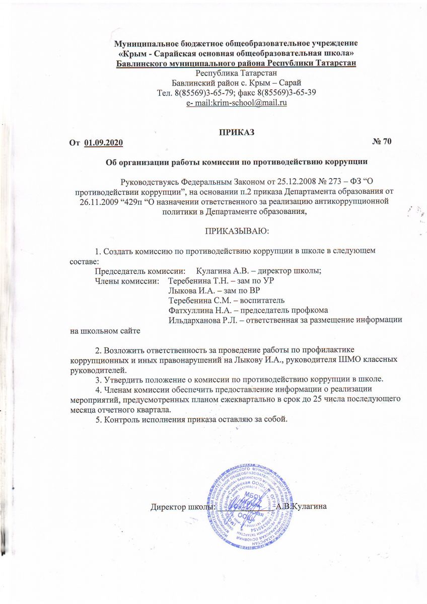 Приказ "Об организации работы комиссии по противодействию коррупции"