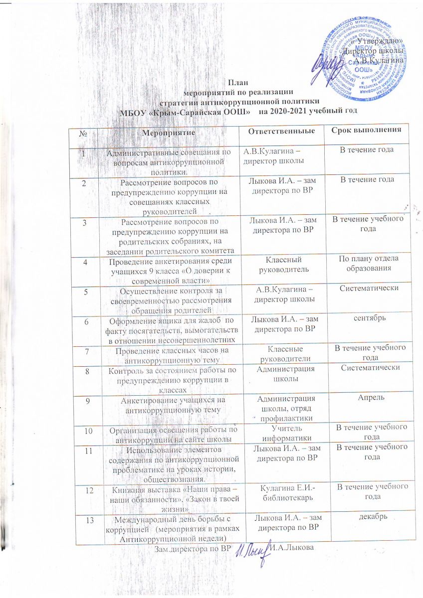 План мероприятий по реализации стратегии антикоррупционной политики