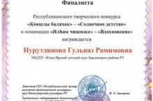 с победой на республиканском творческом конкурсе "Кояшлы балачак" - "Солнечное детство" в номинации "Илһам чишмәсе" - "Вдохновение".