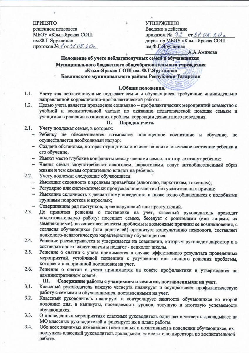 Положение о приеме граждан или обучающихся в МБОУ "Кзыл-Ярская СОШ им.Ф.Г.Яруллин"